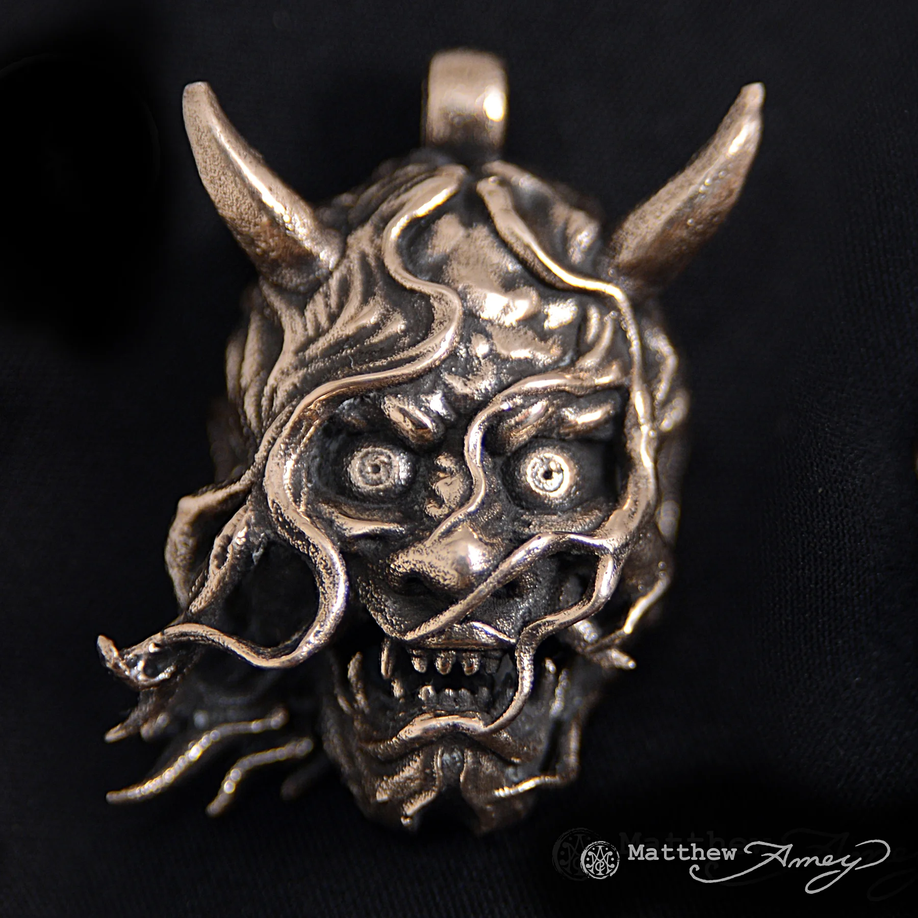 I only have one cast bronze hannya pendant left. I won’t be making any more of these in this material so grab it while I still have it!! All sales final on this one.